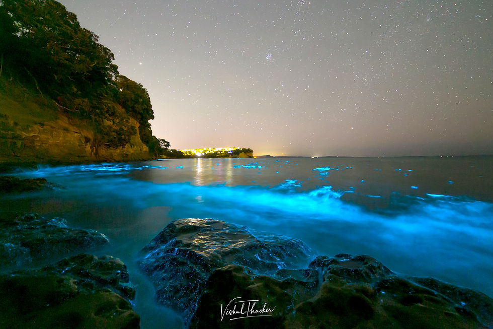 2021年1月4日和5日晚,在奧克蘭北部旺阿帕勞阿半島(Whangaparaoa Peninsula)的大曼利海灘(Big Manly Beach),柔美的藍色熒光隨著海浪在水中流動,與天上的繁星遙相呼應,如夢如幻。藍色的熒光在運動的水流中因其速度的變化忽明忽暗,在海浪的頂端尤為耀眼,美麗的景象讓人嘖嘖稱奇。