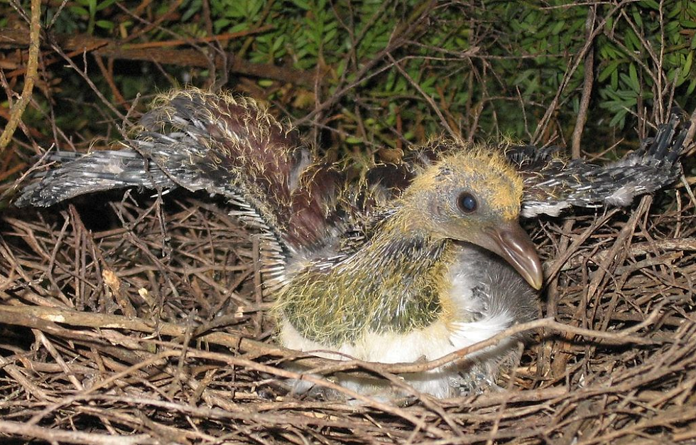 在哺育後代方面,紐西蘭木鴿每次只產下一枚蛋,精心孵化28天后小鴿子才會破殼而出。再過40天,小鴿子們就開始學習飛行技巧,“實習”兩週後它們就能獨立捕食了。不過,很多小鴿子不會立刻獨立生活,而是要再和爸媽一起生活將近一年才肯自立門戶。